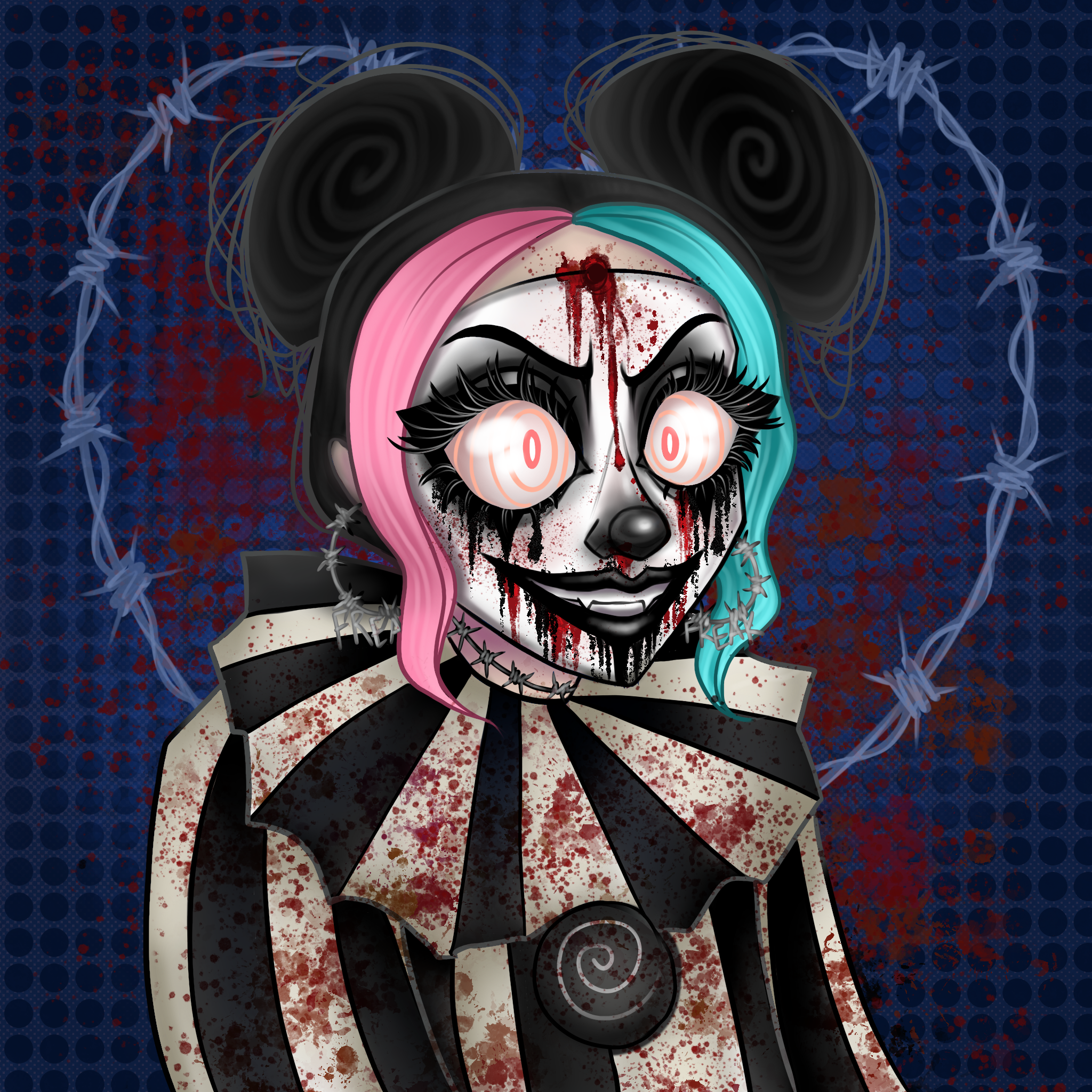 a commission for the lovely chuckles the clown !!! this was sO much fun to do !! i absolutely love painting haunt characters. 11x14" acrylic on canvas