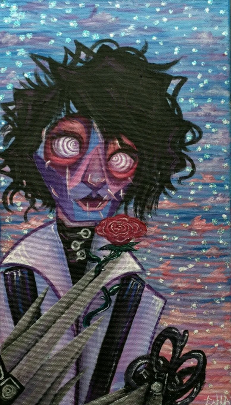 another gift for my bf ! scissorhands but its him. 5x5" acrylic on canvas panel