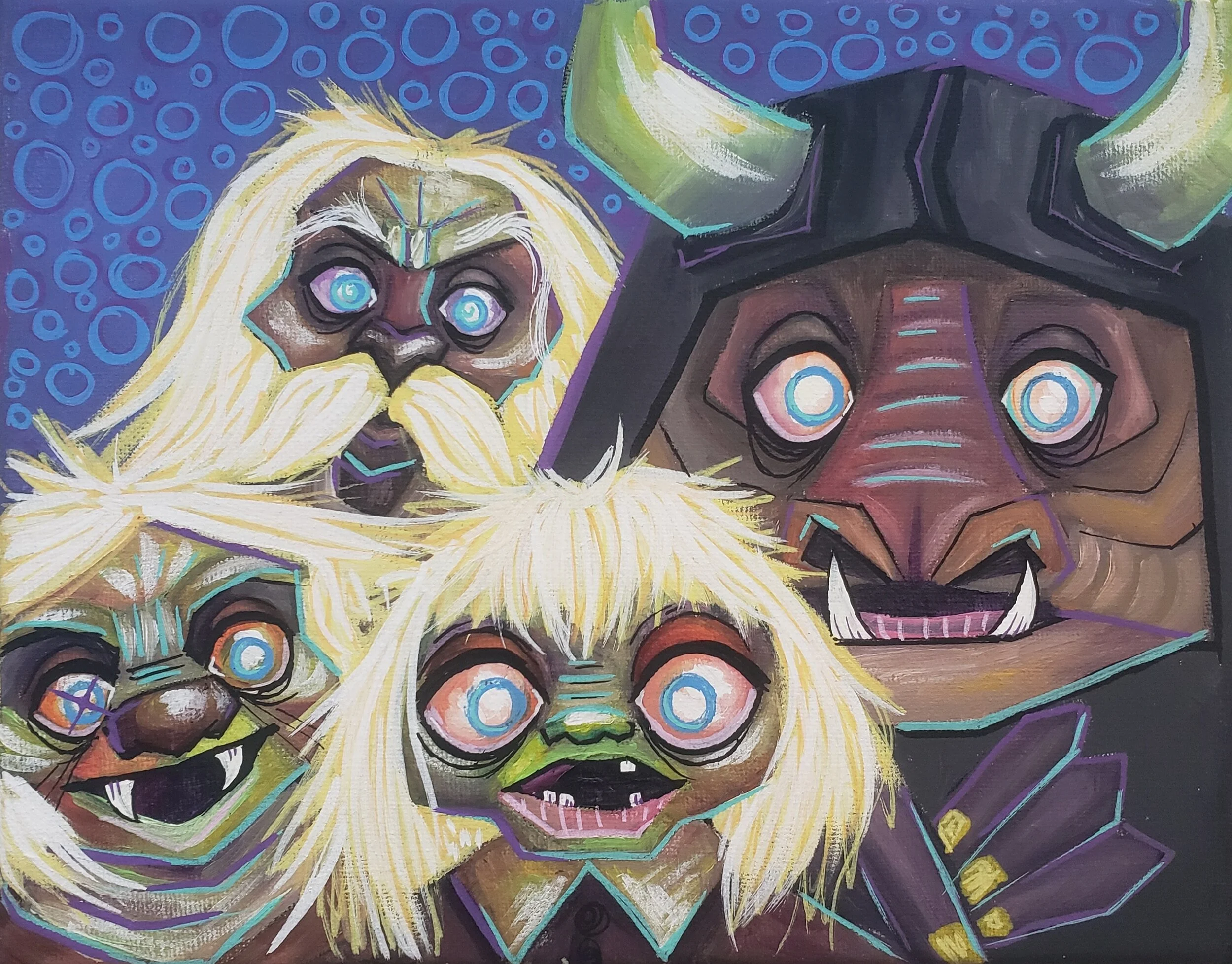 acrylic on canvas. 8x10”. goblins from labyrinth.