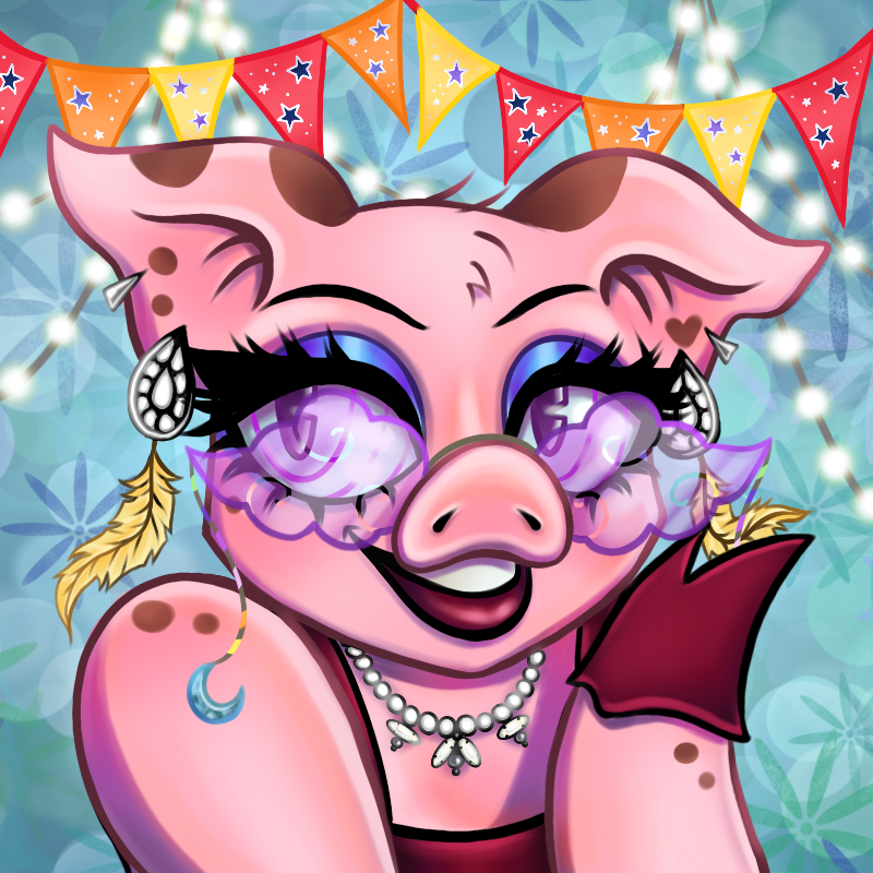 acrylic and glitter on canvas. 11x14”. bats the clown as a betty spaghetty doll! includes an extra outfit, her sketchbook and some paint pens, a kazoo, some bubbles, and a purse full of candy. oh, also some blood, teeth, aaaaand a thousand year curse. maybe dont open the box?